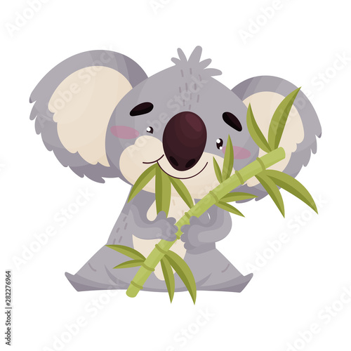 Cute koala eats bamboo leaves. Vector illustration on white background. - Buy this stock vector and explore similar vectors at Adobe Stock | Adobe Stock